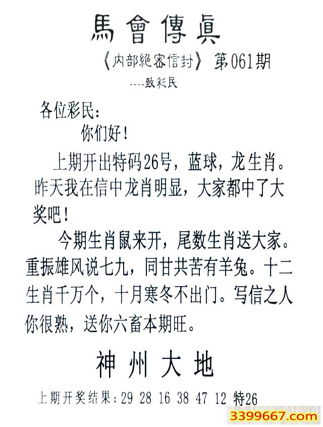 | 主题 :061期:首发推荐:≮馬會傳眞≯→(香港正版) |