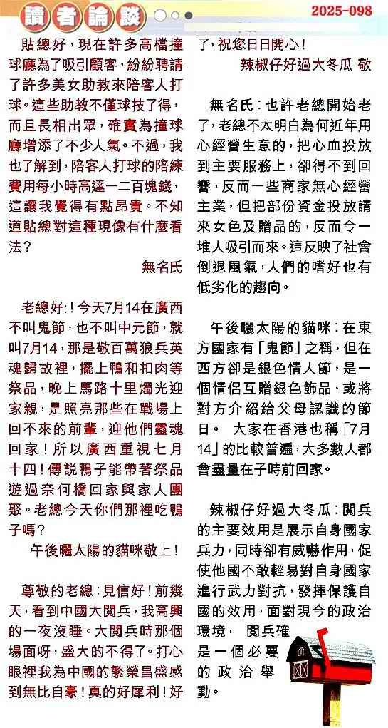 | 主题 :098期:彩民推荐贴信读者论坛 |