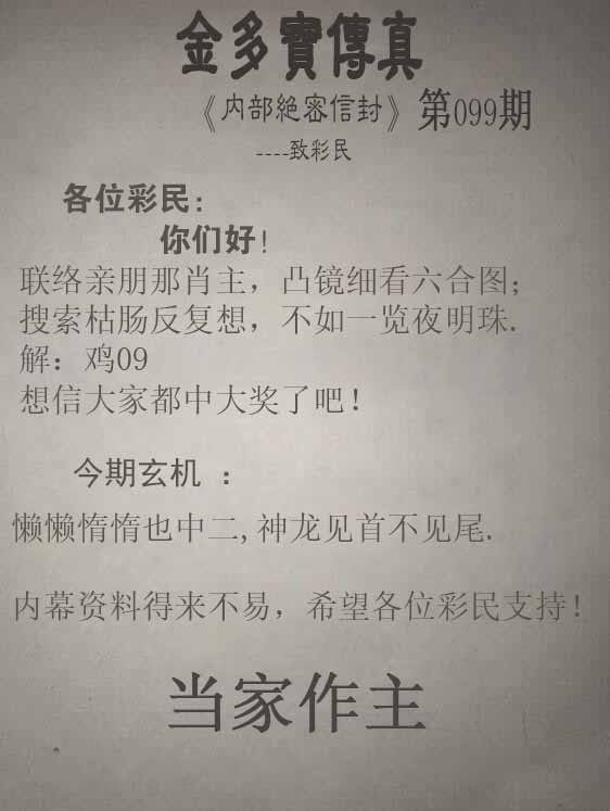 | 主题 :099期:金多寶傳真 |
