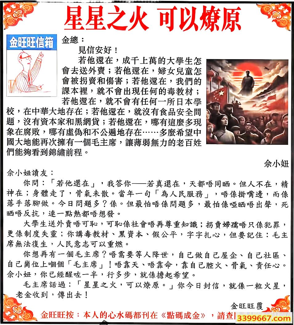 | 主题 :108期:金旺旺信箱彩民推荐→→《星星之火 可以燎原》 |