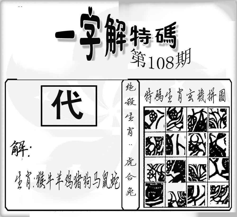 | 主题 :108期:一字解特码 |