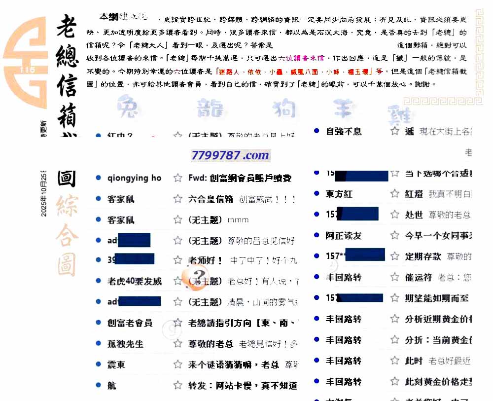 | 主题 :115期:六合皇金句/老总论码/萧公子/林大师/五行夺码/老总信箱截 |