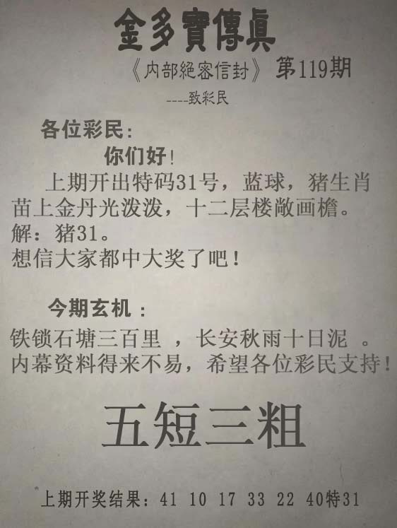 | 主题 :119期:另版【金多寶傳真】 |