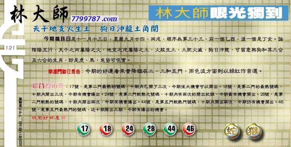 | 主题 :121期:六合皇金句/老总论码/萧公子/林大师/五行夺码/老总信箱截 |