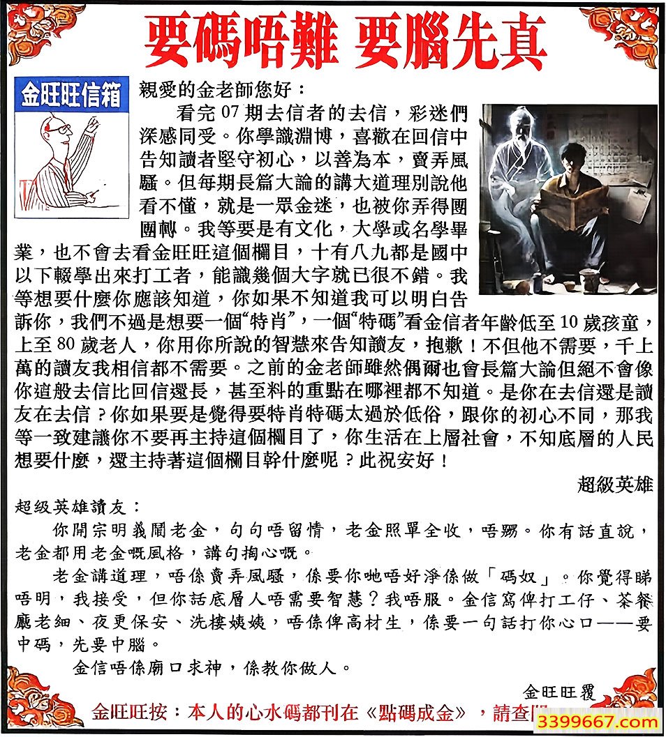 | 主题 :127期:金旺旺信箱彩民推荐→→《要碼唔難 要腦先真》 |