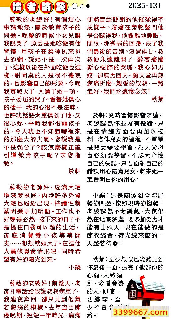 | 主题 :131期:彩民推荐〖貼信讀者論壇〗 |