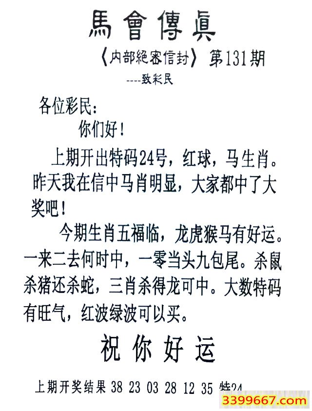 | 主题 :131期:首发推荐:≮馬會傳眞≯→(香港正版) |