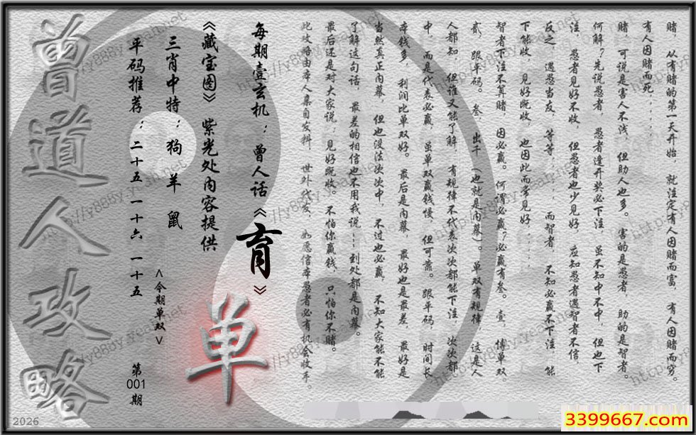 | 主题 :001期藏寶圖 新:郊外黄垓端可厌 老:晴街春色香车立 禁:虎 禁:0尾 |