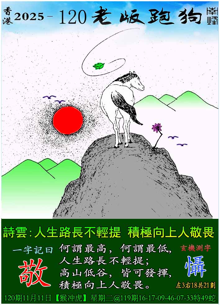 | 主题 :120期老版跑狗一字記之曰:【敬】 玄機測字:《懾》 |