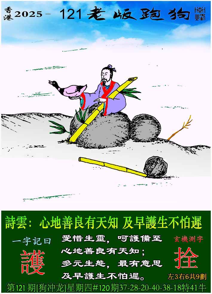| 主题 :121期老版跑狗一字記之曰:【護】 玄機測字:《拴》 |