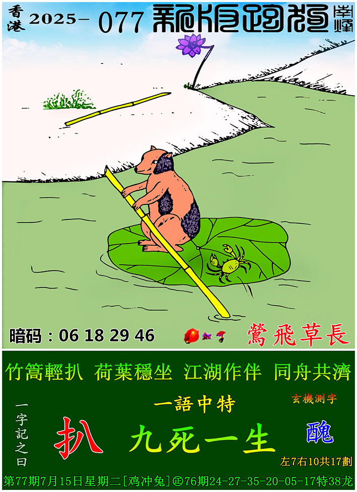 | 主题 :077期:新版跑狗一字記之曰【扒】 玄機測字:【醜】 |