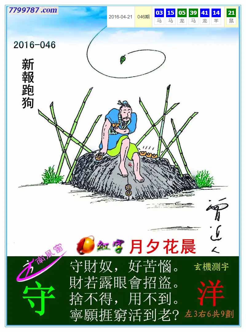 | 主题 :110期:新版跑狗一字記之曰【錢】 玄機測字:【增】 |